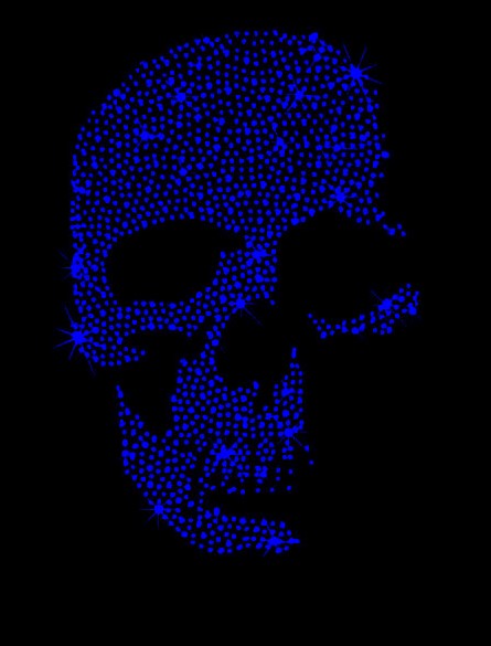 Strass Hot Fix Bügelbild exklusiv Design Totenkopf-Skull Motiv Grösse: 20 x 13 cm Farbe: Capri Blau